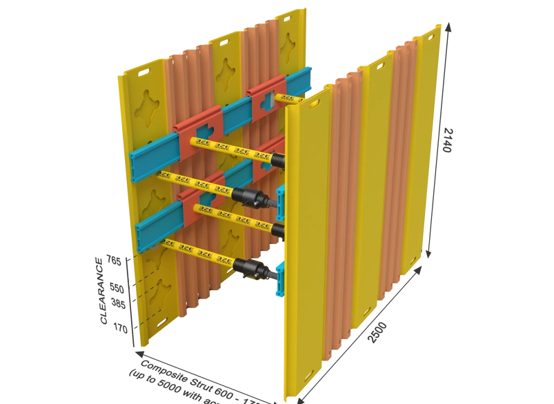The EZE Shoring 2,520mm/2m system is the world's first metallic trench support solution. This system is 100% non-conductive when used with composite struts, making it the safest choice for working around live gas, water and electricity services.